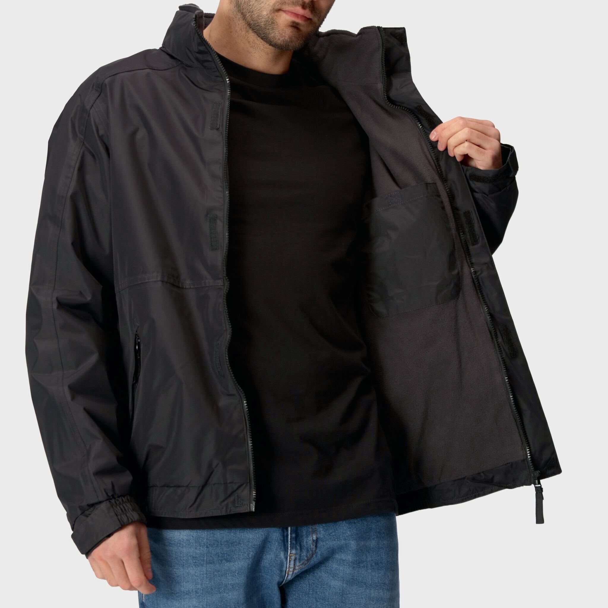 Designed with functionality in mind, the jacket includes a concealed hood with adjusters, a storm flap with hook and loop fastening, adjustable cuffs, and multiple pockets for secure storage. Additionally, it offers a concealed zip entrance in the lining for embroidery access, making it suitable for corporate branding.