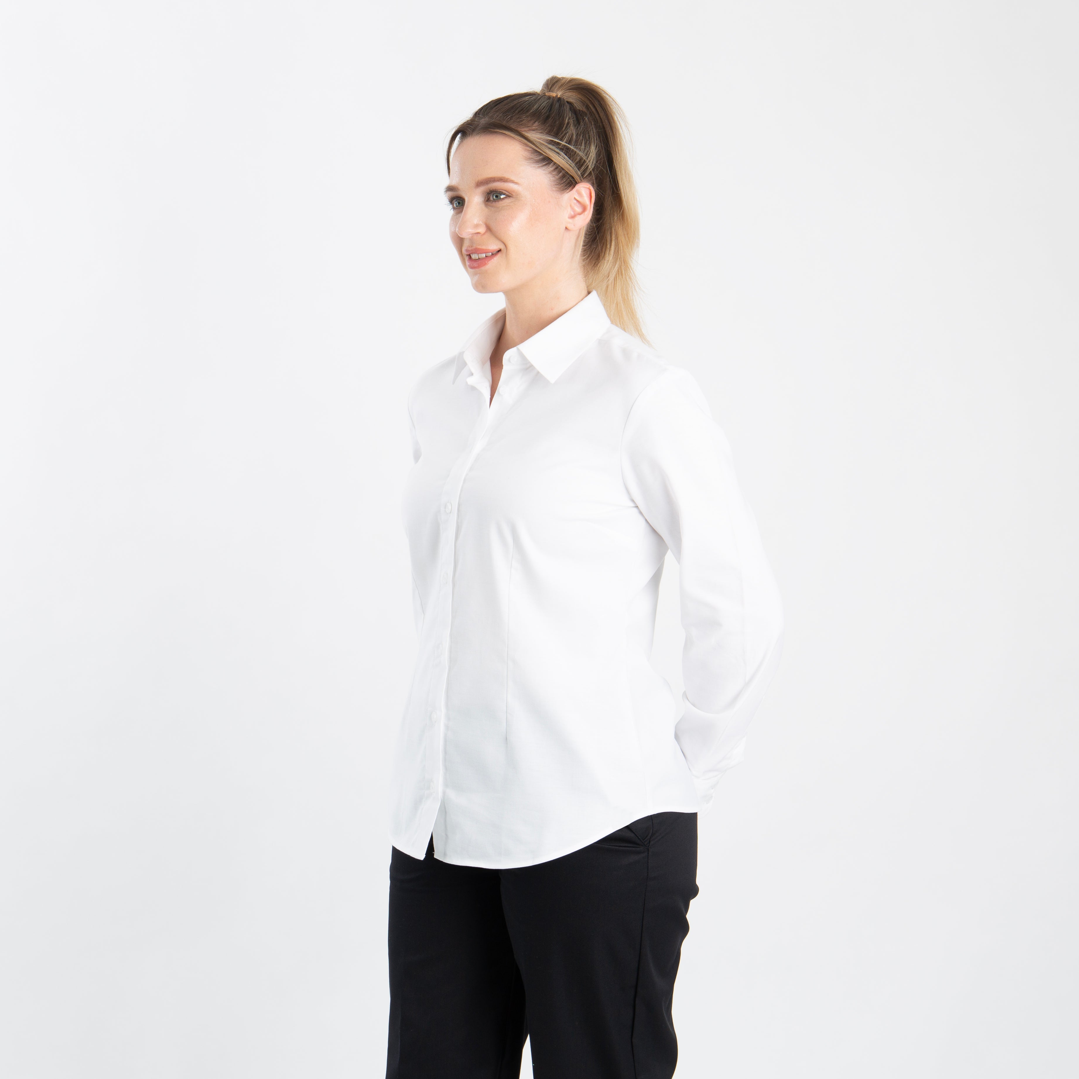 The Women’s Long Sleeve Oxford Shirt delivers a professional, polished look with a flattering tailored fit. Designed with waist and bust darts, it creates a feminine silhouette that’s ideal for office, corporate, or hospitality roles.