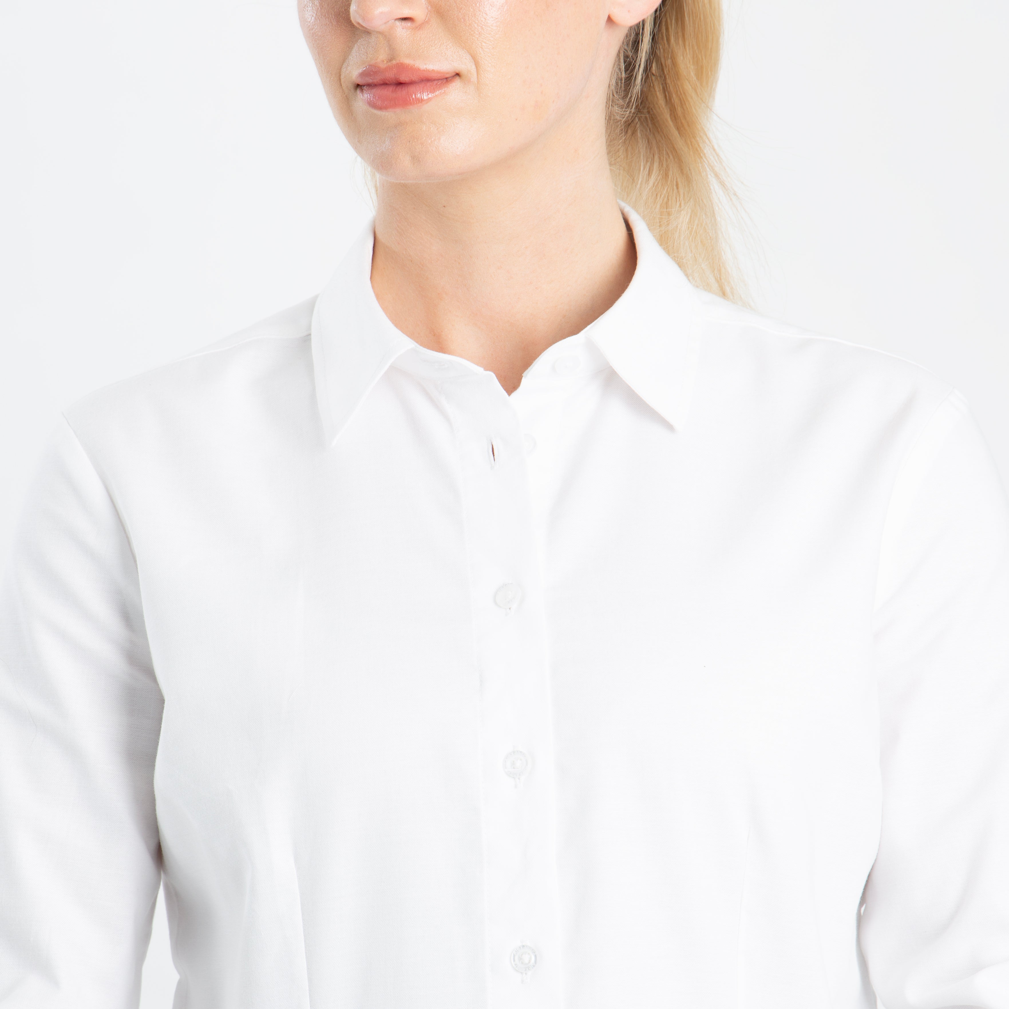 Practical design details include internal modesty buttons to prevent gaping, a horizontal buttonhole at the top of the neck for a neat finish, and double button mitered cuffs for added style. A back yoke provides structure, while the durable Oxford fabric ensures it holds its shape and stays looking smart.