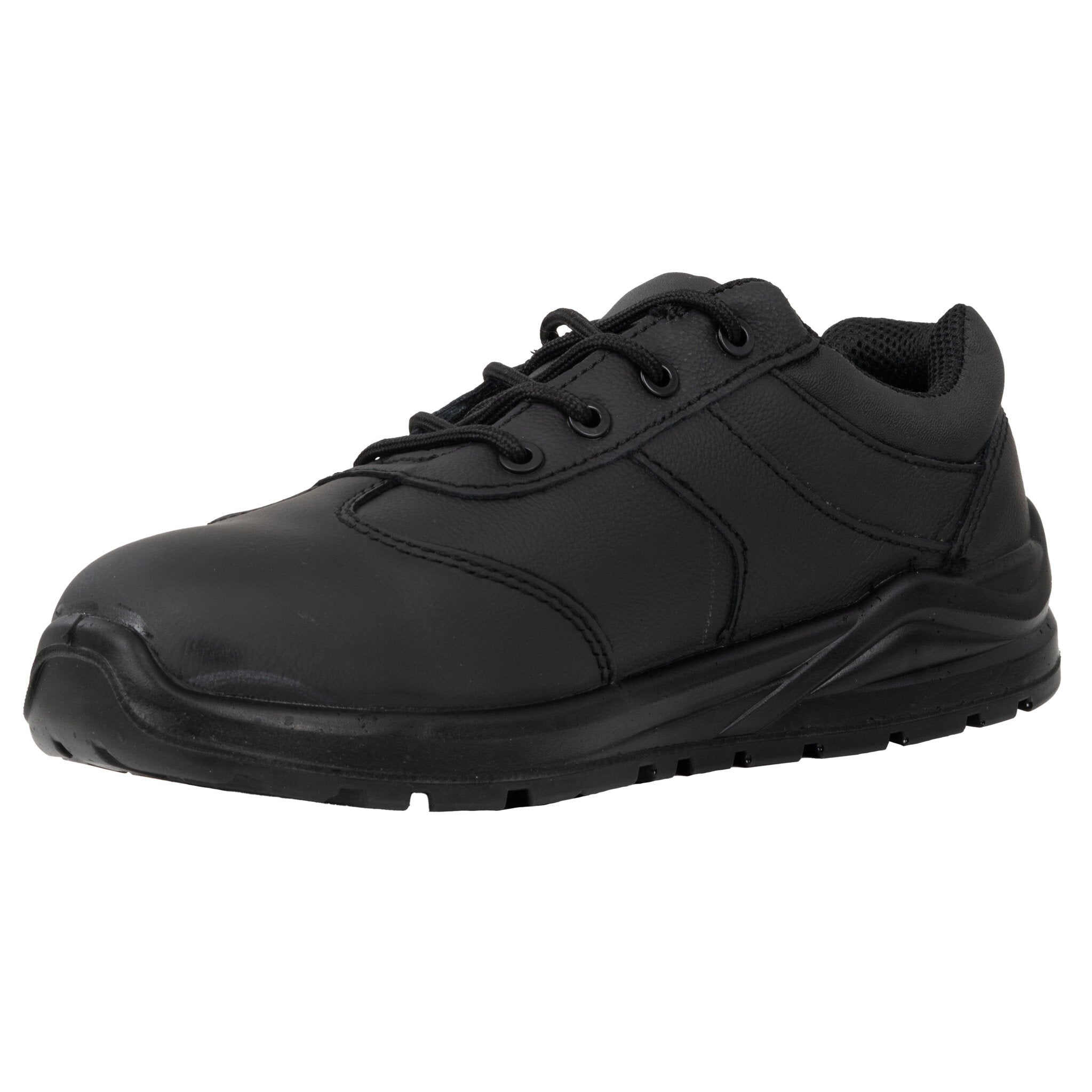 The Essential Black Safety Trainer looks like a classic everyday shoe, but it’s built to meet tough workplace demands. With a water-resistant leather upper, it helps keep your feet dry throughout the day, whether you're working indoors or out.
