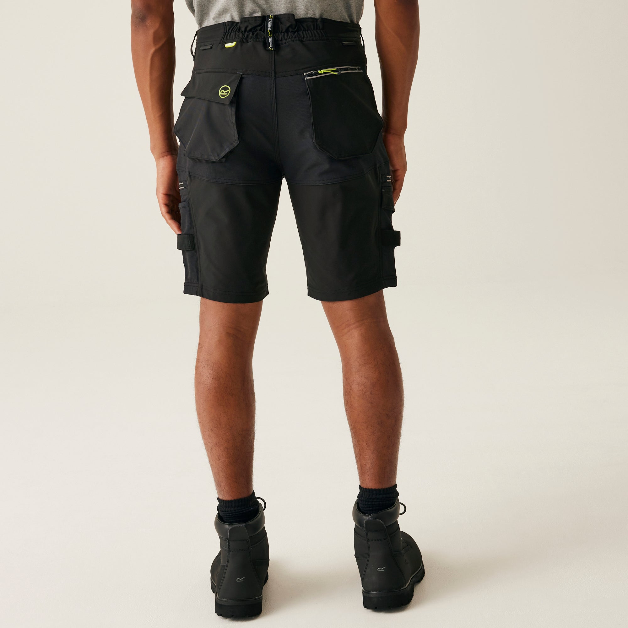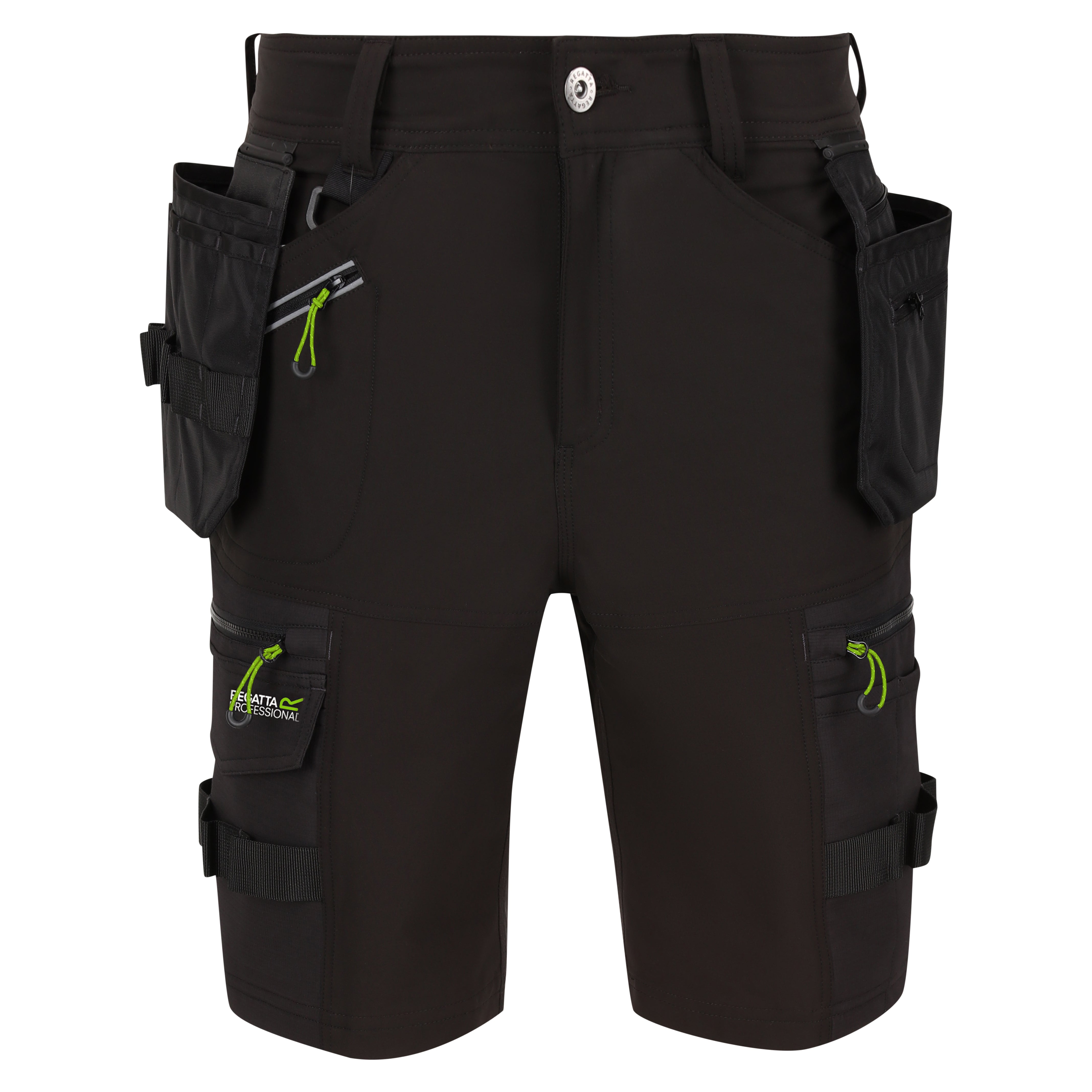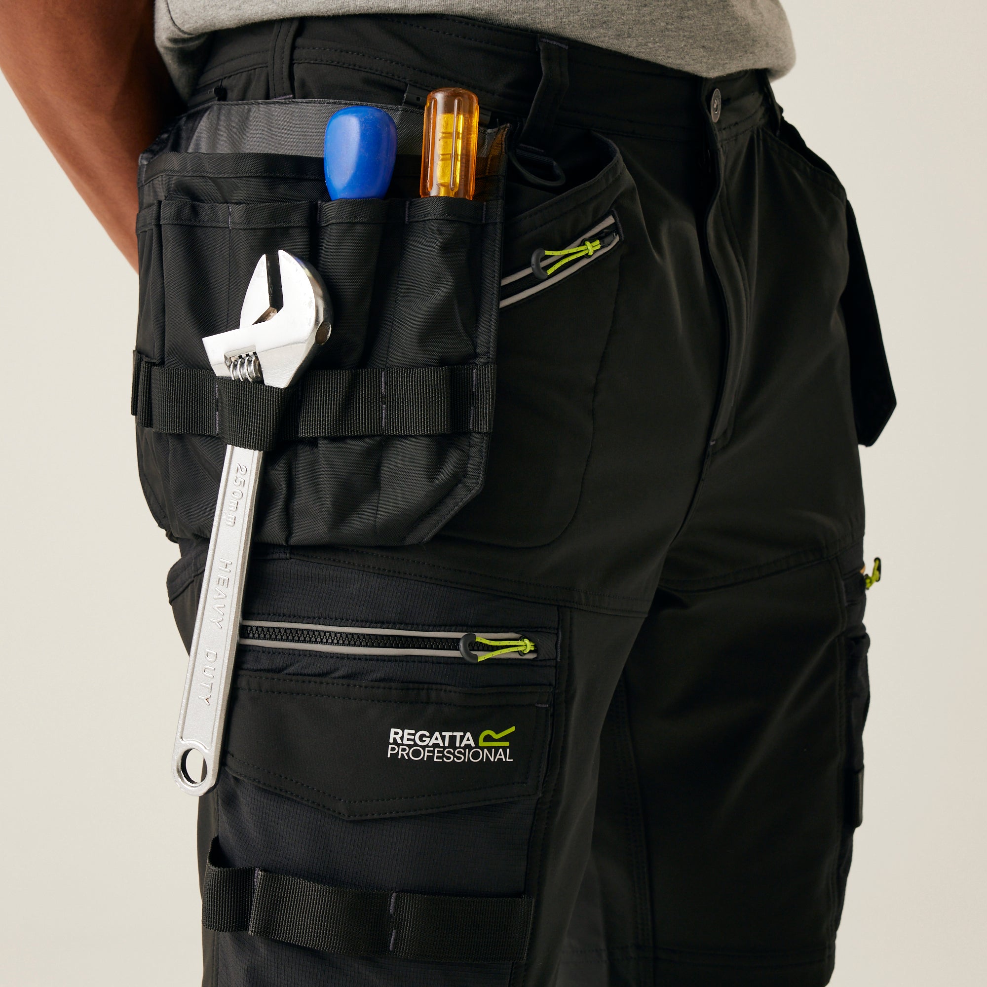 Water-repellent and durable, the Regatta Infiltrate Shorts with Detachable Holsters are perfect for work in the sun. Featuring a stretch fabric, the men's work shorts will keep you agile on the job. The workwear shorts come with a water-repellent finish to protect from showers and splashes. With detachable holster pockets and multiple pockets, your tools will never be far behind.