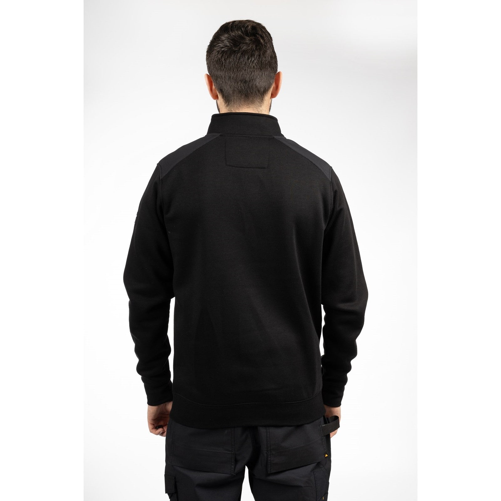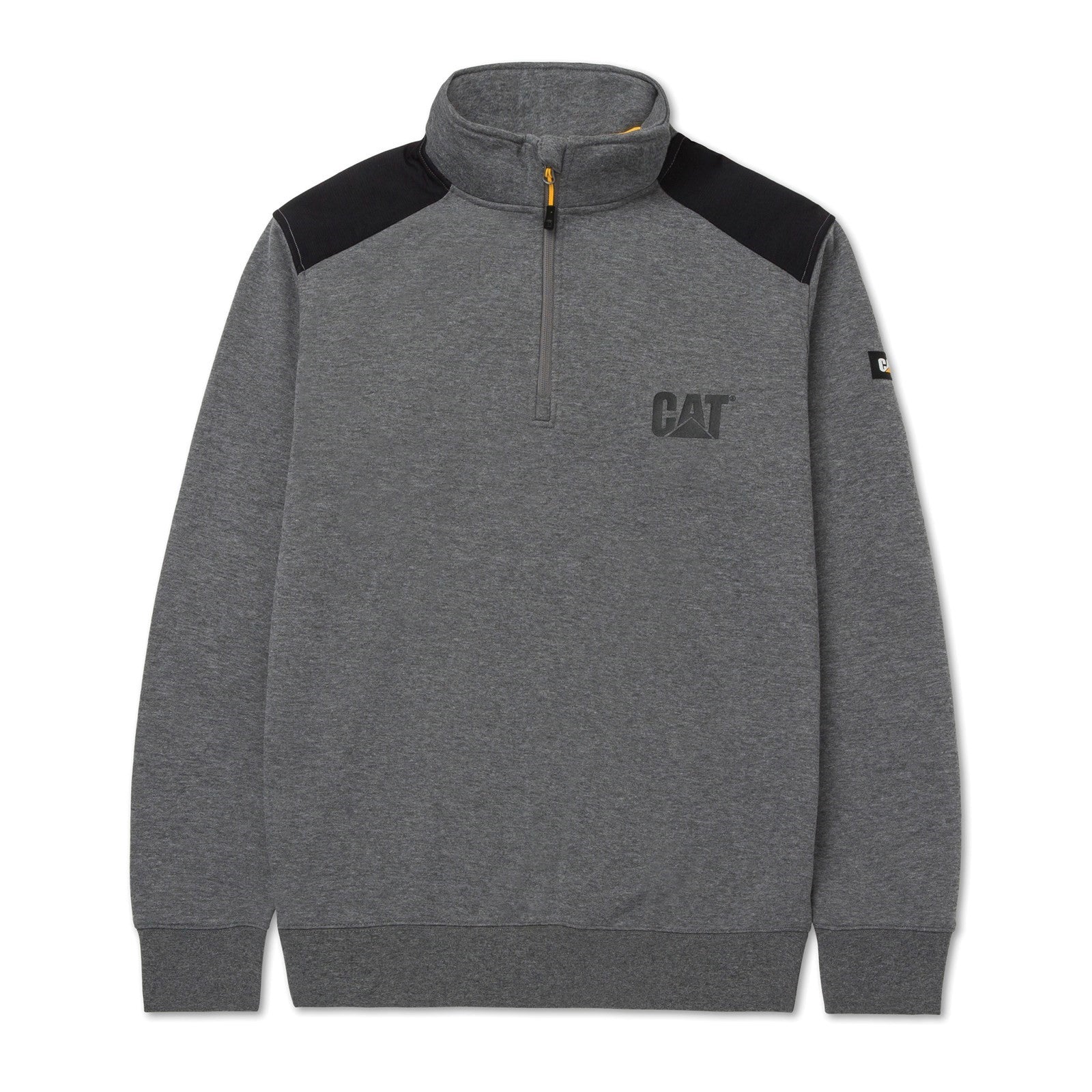 The CAT Essential 1/4 Zip Sweatshirt is the perfect choice for those needing warmth and comfort without a hood, making it ideal for workplaces with no-hood policies. Designed for practicality and style, the quarter-zip closure allows for adjustable ventilation, while the nylon shoulder overlays add durability and a modern look. The tonal graphic on the chest and logo label on the bicep give it a sleek, branded touch. Available in black and grey, this sweatshirt is a versatile workwear staple.